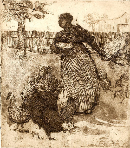 Margaret Law is purported to have said of her work, “I put down what I see, wherever I am, and the result is a record of life in a small southern town.” Interest in real-life characters and situations was common among students of Robert Henri, and Margaret Law’s “small southern town” was a cultural territory brimming with interesting characters and symbolic, pastoral rituals. Many of Law’s works depict the lives and routines of rural laborers, often African Americans. The number and variety of works that deal with this theme in her oeuvre reveal a deep attachment and interest. Her etchings dealing with this theme are particularly masterful, displaying great sensitivity to form, line, and tone.