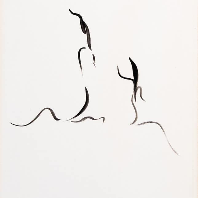 Helen DuPré Moseley created her ink drawings early in her artistic career. These ambiguous organic forms, which call to mind creeping floral vines, are a contrast to Moseley’s animal-inspired figures.