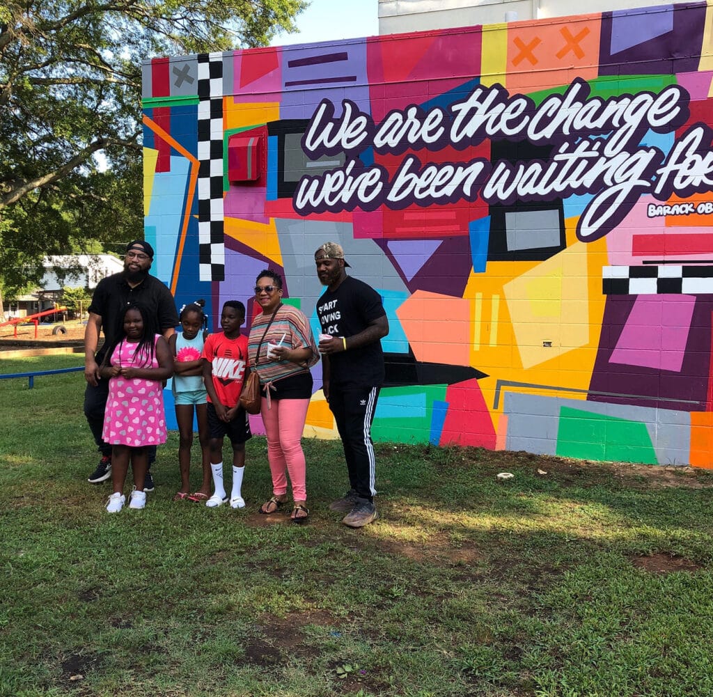 In 2019 Spartanburg Art Museum, The Bethlehem Center kids, the Spartanburg County Foundation, and local artists Frankie Zombie and Adrian Meadows worked together to bring this vibrant mural to the Highlands neighborhood.