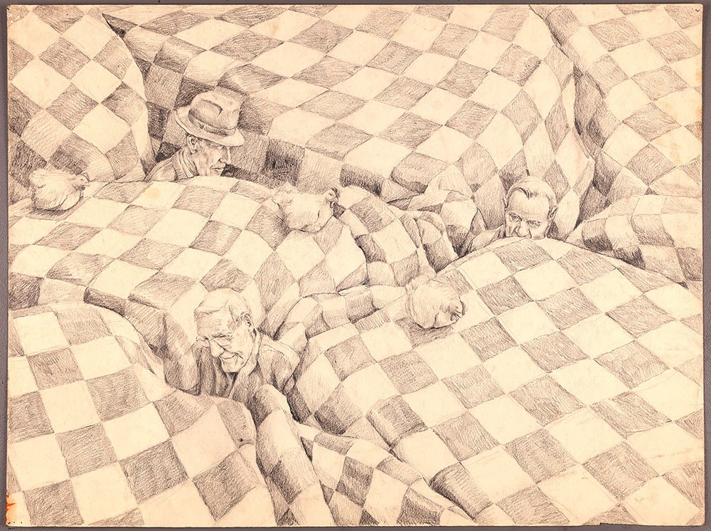 For this exhibit, with Sara’s selection established, I was able to dig out several more pieces from my studio racks and drawers that represent the transitions of my style and content in even greater detail. The result seems more like a book than an exhibition. Each section of the gallery is like a chapter in my life as an artist. Perhaps that’s the most appropriate way to show the life of a visual storyteller.