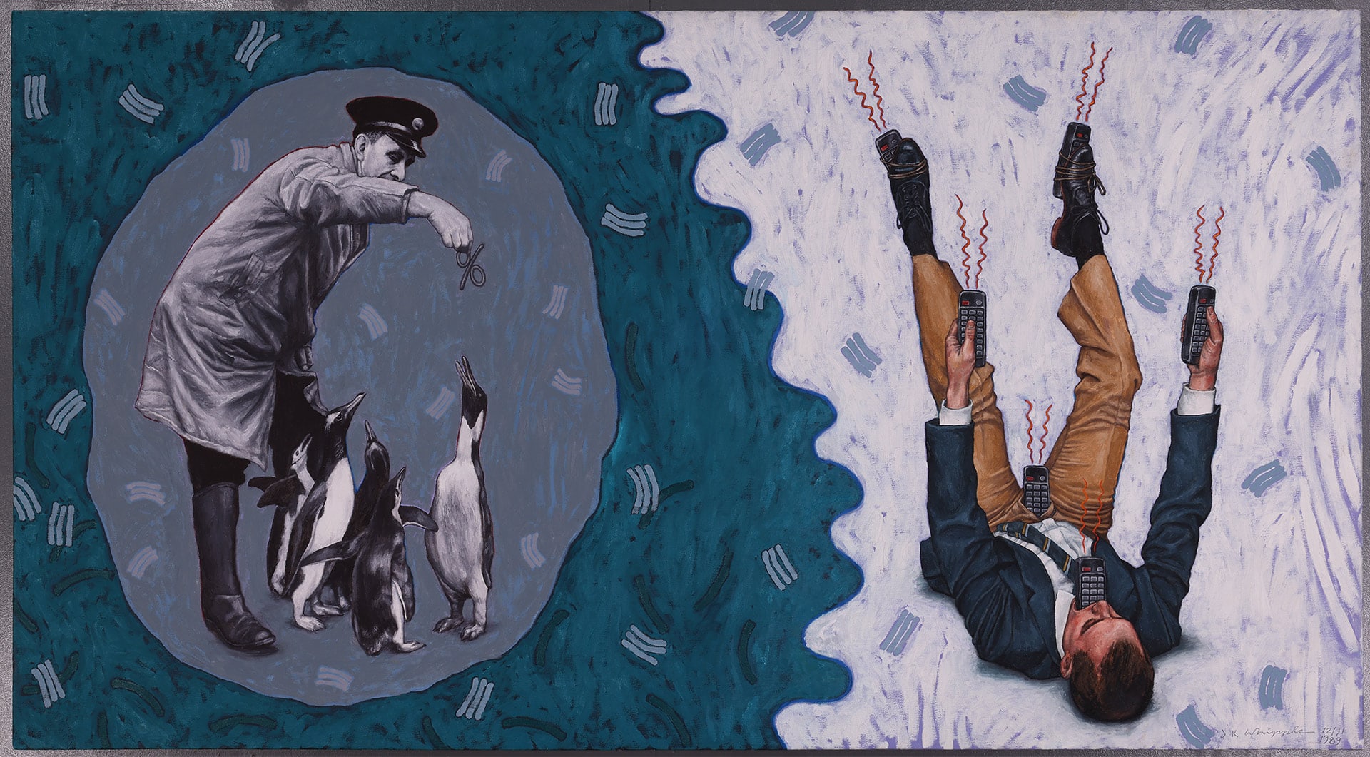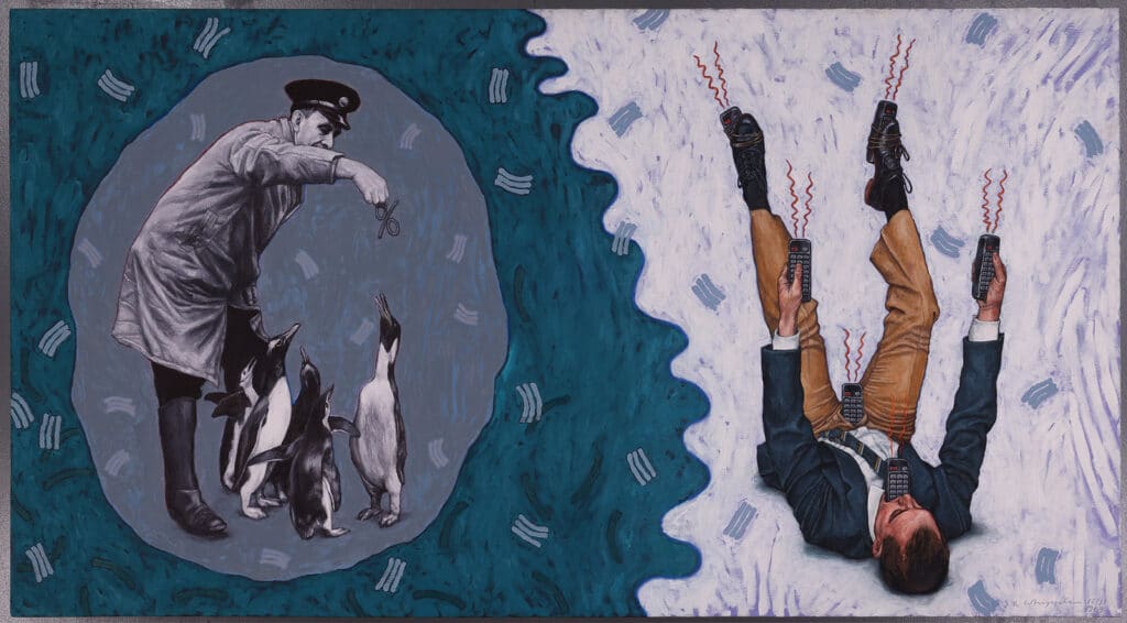 Jeff Whipple: The Wows of the Nows, A Fifty Year Retrospective” celebrates five decades of provocative, concept-driven work by Florida-based artist Jeff Whipple. Known for his razor-sharp wit and realistically rendered metaphorical images, Whipple’s artwork explores themes of mortality, identity, and the absurdity of modern life. Over the past fifty years, he has built a unique style that reflects a lifelong investigation of what it means to perceive, interpret, and inhabit the world, filtered through a lens that is at once skeptical, incisive, and marked by a wry, understated humor.