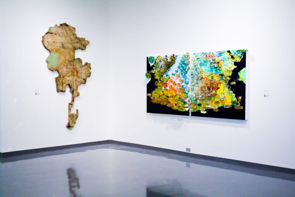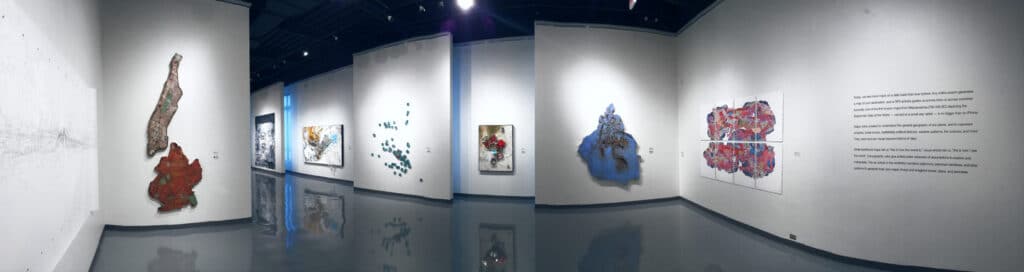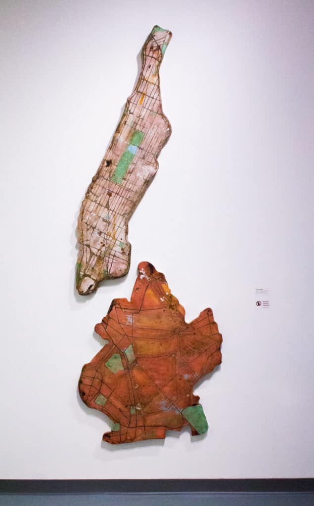 For centuries, artists have drawn on cartography as a source of conceptual inspiration. Maps serve as rich backdrops to explore imposed physical boundaries, political and social territories, and personal notions of power and perimeter. These six artists use and respond to maps as a subject matter to question how we create and interpret boundaries.