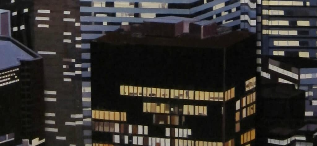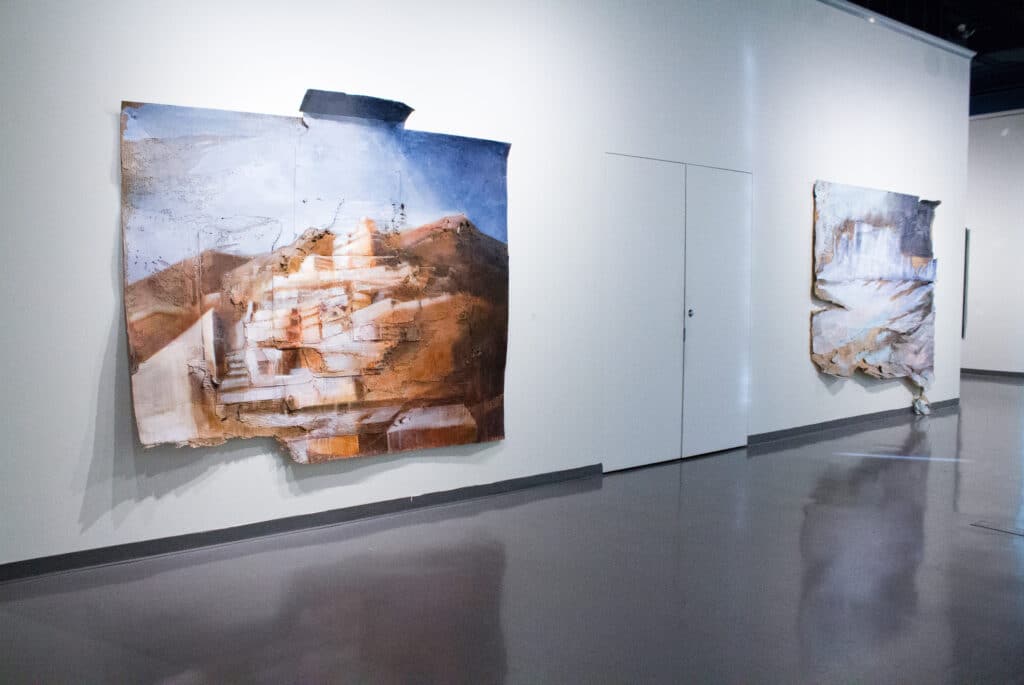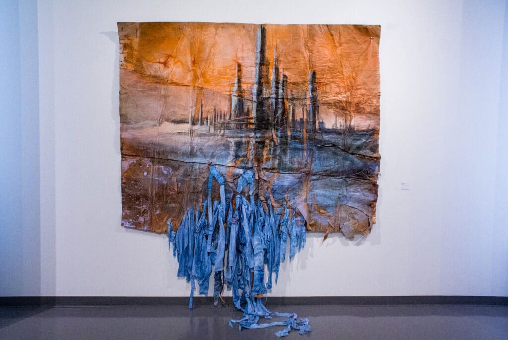 Un)common Space(s) is a group exhibition that broadly examines the relationship between natural, constructed, and decaying space. As the health and well-being of our planet continues to decline, viewers are challenged to consider such themes as the loss of natural resources, the lack of interaction between humanity and nature, and the decay of urban landscapes. The works on view range from dynamic urban landscape paintings on non-traditional surfaces, to documentary photography, to incorporating detritus from abandoned rural sites in mixed-media and encaustic works. These materials and techniques contribute to the visual conversation that balances between permanence and impermanence.